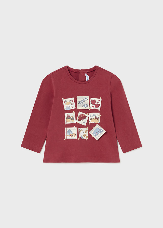 Conjunto Blusa M/L Color Cerza Con Pantalón Malla Pana Camel Mayoral M2054 Bebe Niña