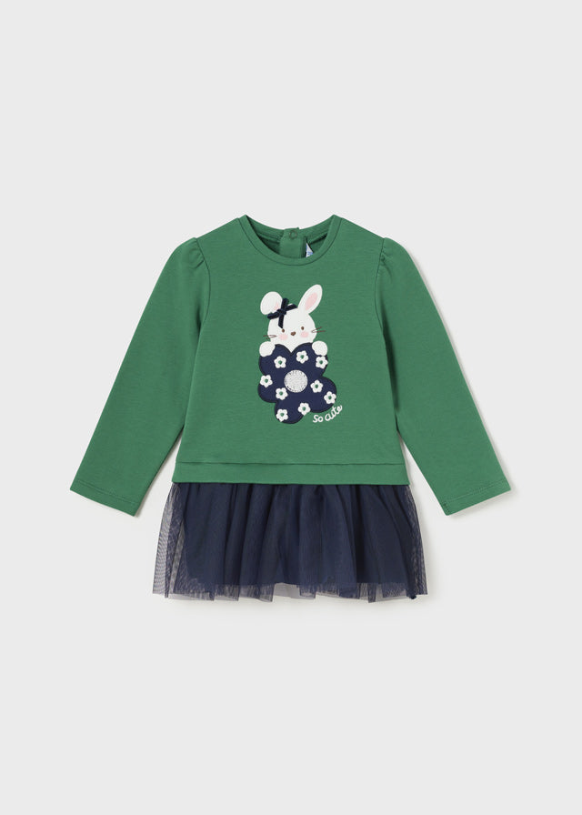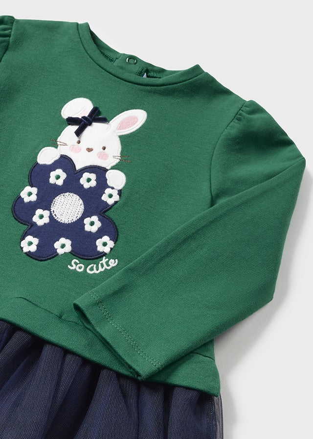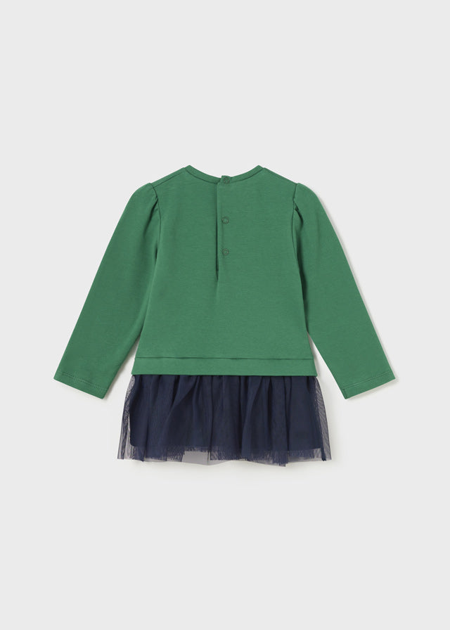 Vestido M/L Combinado Tul Verde/Marino Bebe Niña Mayoral M2989