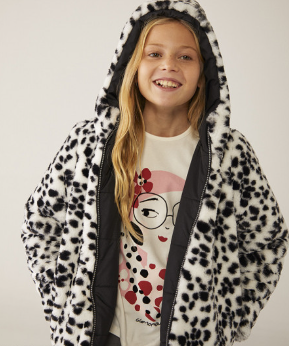 ABRIGO REVERSIBLE ANIMAL PRIN/ NEGRO NIÑA BOBOLI