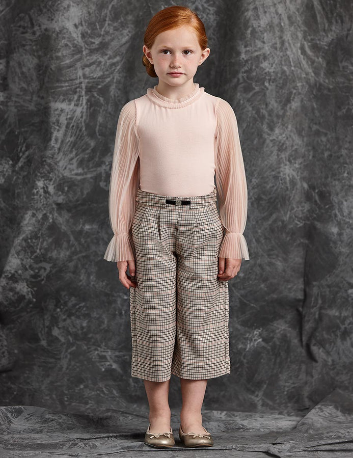 Pantalon Vestir Tobillo Cuadros Arena Abelylula M5721