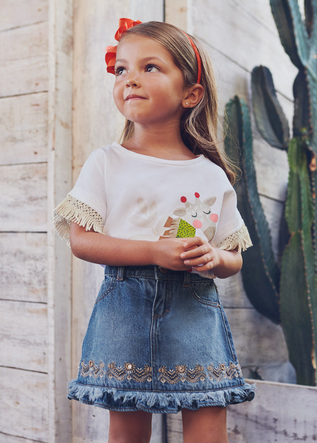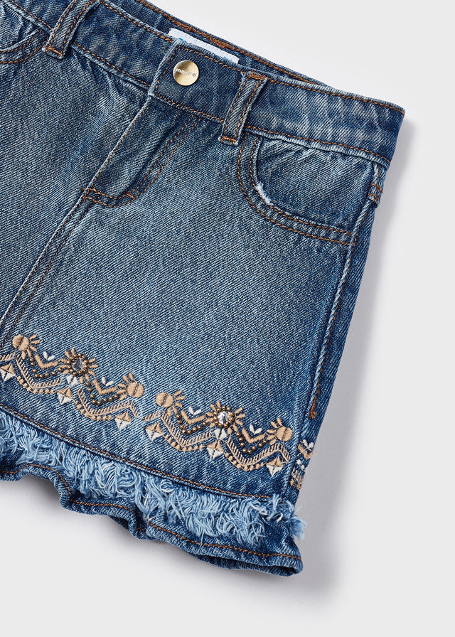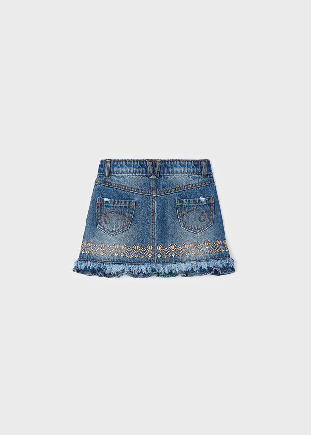 Falda Mezclilla Bordada Cintura Ajustable Niña Mayoral M3904