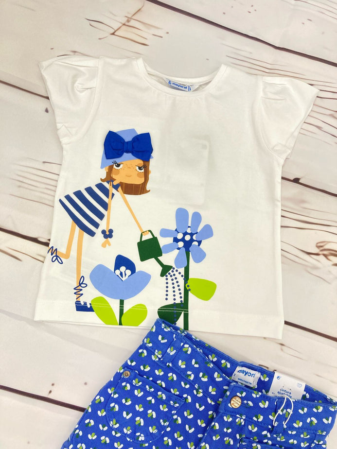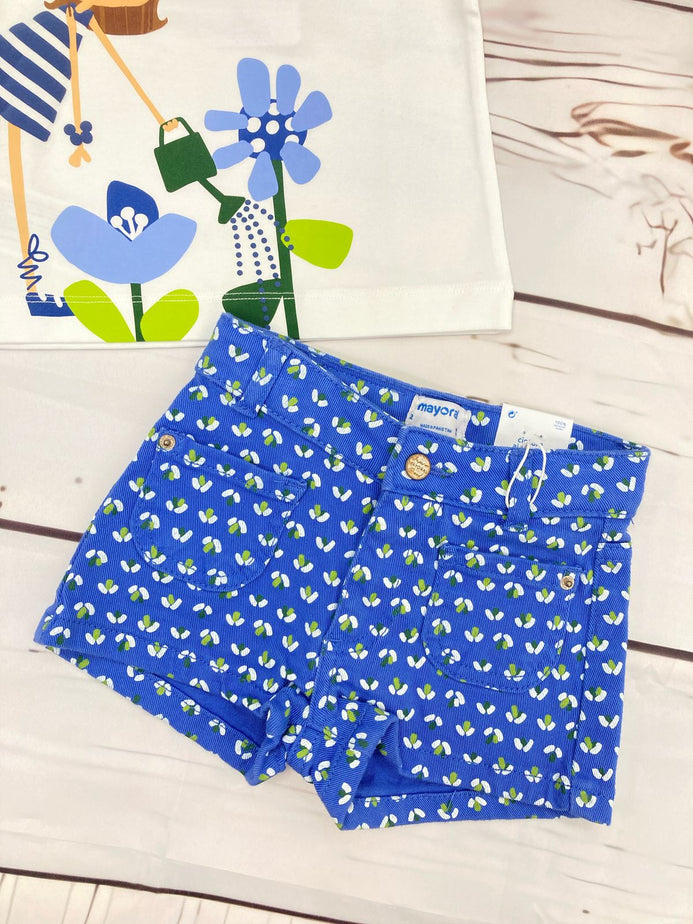 Conjunto Blusa M/C Blanco Con Short Estampado Niña Mayoral M3015