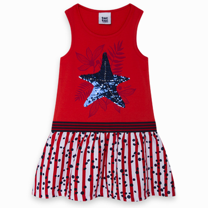 VESTIDO PUNTO Y VISCOSA COMBINADO NIÑA ROJO LOST OCEAN