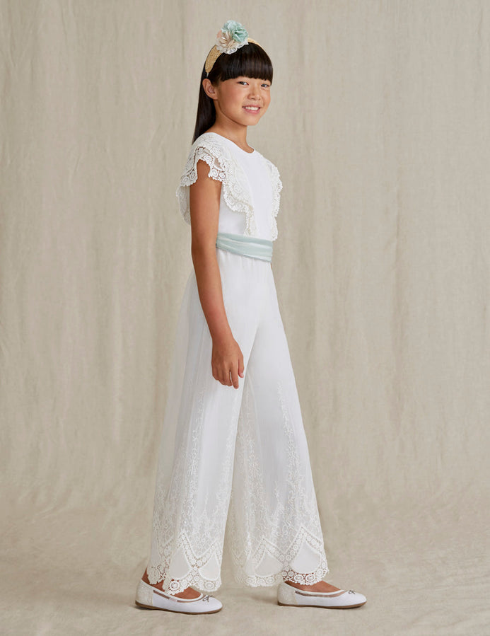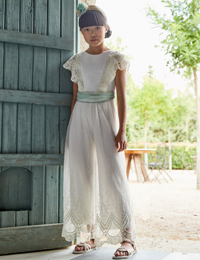Palazzo Pantalon Bordado Encage Beige Niña Abelylula M5220