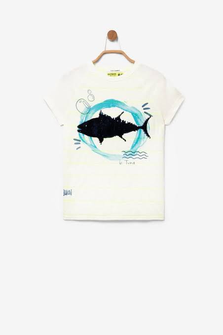 Playera M/C Pez Esqueleto Lentejuela Desigual M19SBTK15