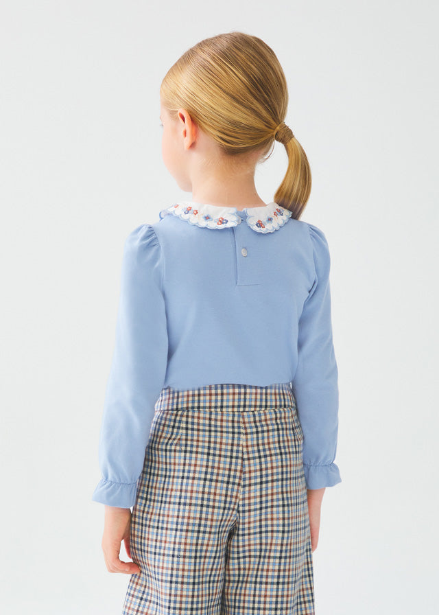 Blusa M/L Cuello Bordado Azul Niña Abelylula M5632