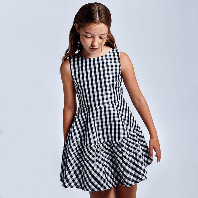 Vestido Tafetan Cuadros Negro Niña Junior Mayoral