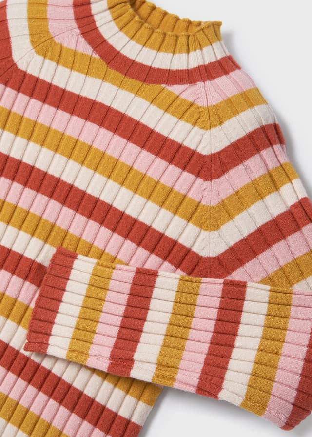 Blusa M/L Cuello Alto Tejido Rayas Naranja Niña Mayoral M4024